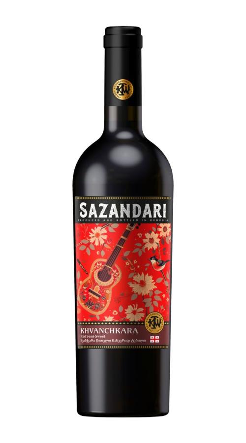 Sazandari, Хванчкара — красное полусладкое вино, созданное в Кахетии, где выращивают редкие грузинские сорта винограда Александроули и Муджуретули. Эти автохтонные разновидности культивируются здесь не одно десятилетие, и именно местный климат с резкими перепадами дневных и ночных температур, горный рельеф и насыщенные минералами почвы придают вину узнаваемый характер — с фруктовой полнотой, мягкой сладостью и свежестью.